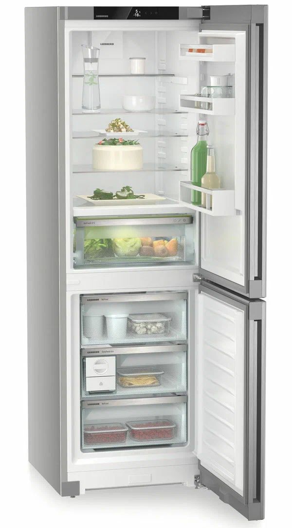 За сохранность продуктов отвечает технология BioFresh Fruit & Vegetable-Safe: температура близка к 0 °C и повышенная влажность помогают дольше поддерживать свежесть овощей и фруктов без лишних настроек. В морозильной камере работает NoFrost — оттаивание вручную не требуется, на продуктах не образуется иней, а энергия расходуется эффективнее.