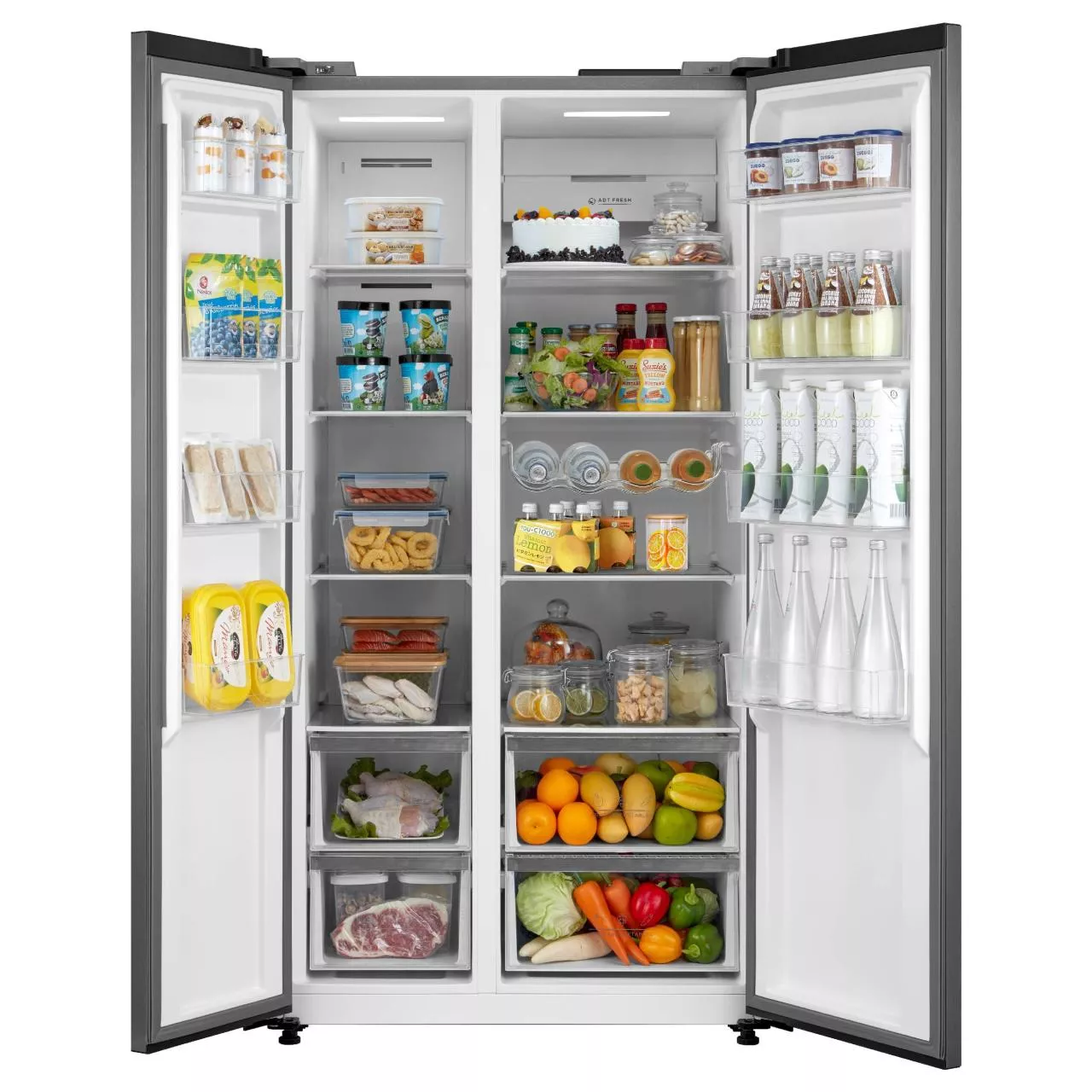 Холодильник Korting KNFS 95780 X выполнен в цвете нержавеющей стали. Холодильная камера оснащена 4 стеклянными полками и 2 ящиками для овощей. Специальная полка для бутылок обеспечит более эргономичное хранение продуктов. Вместительная морозильная камера на 213 литров поможет замораживать оптимальное количество овощей, фруктов и мясных изделий.