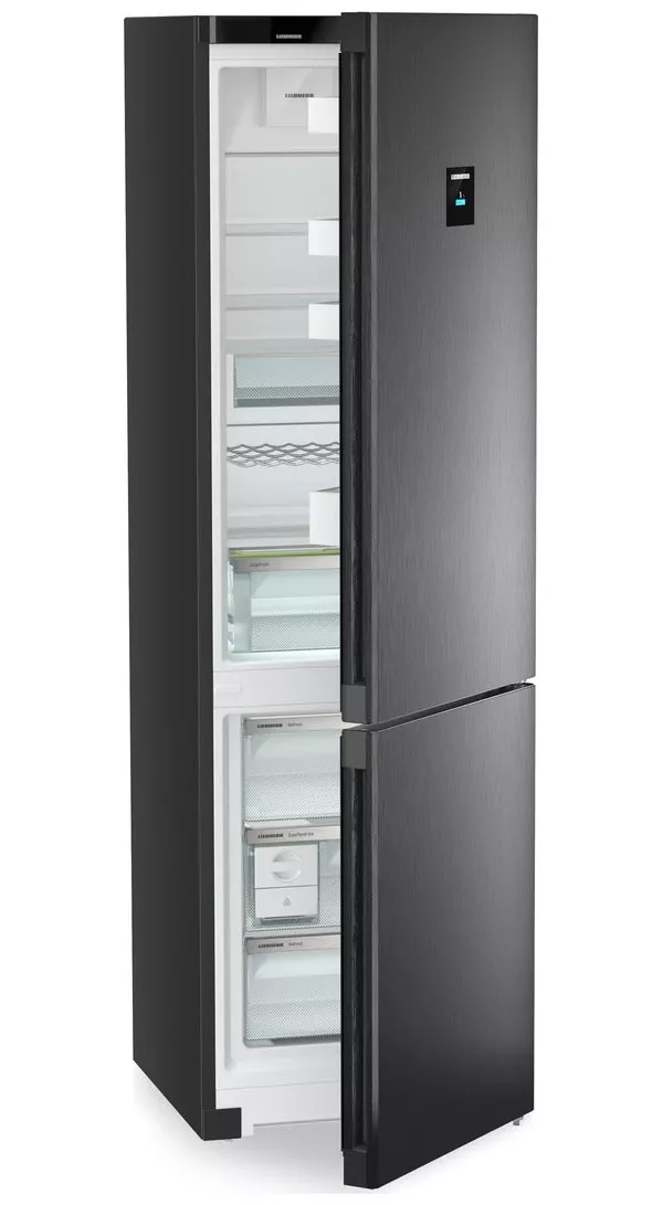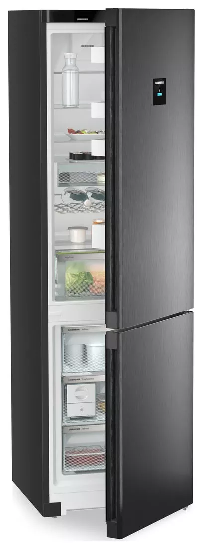 Холодильник LIEBHERR CNbdc 573i-22 001 Plus создан для тех, кто ценит удобство и современный дизайн. Модель в отделке BlackSteel с вертикальной утопленной ручкой гармонично вписывается в кухни с минималистичной геометрией и глубиной 60 см благодаря концепции InteriorFit. Управление реализовано через 2,4" Touch & Swipe-дисплей: наглядный интерфейс помогает быстро менять настройки и отслеживать состояние.